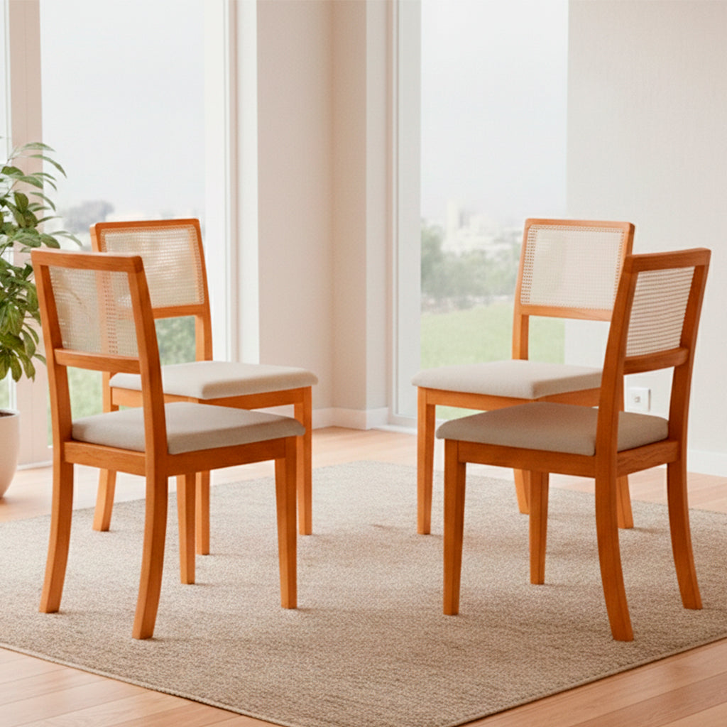 A Cadeira Rubi é a escolha ideal para quem busca unir sofisticação, conforto e acabamento em madeira natural na sala de jantar ou em ambientes elegantes. Com design refinado e encosto em tela sextavada (palha natural), ela traz um toque clássico atualizado para composições contemporâneas.