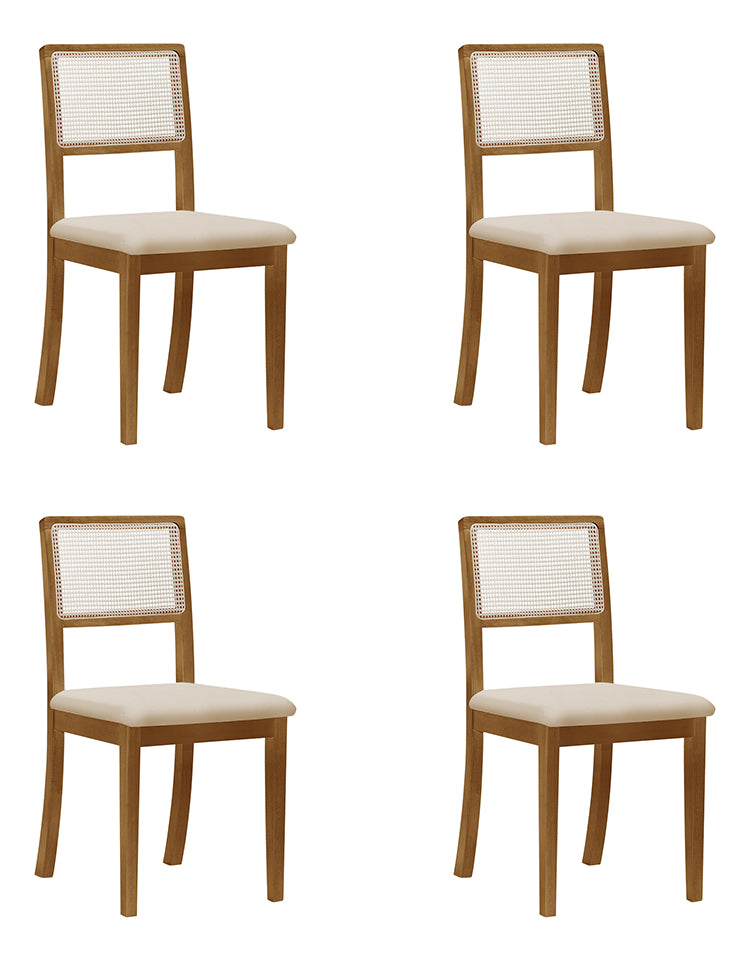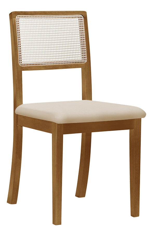 Fabricada com base em madeira maciça na tonalidade mel (castanho), a Cadeira Rubi oferece: